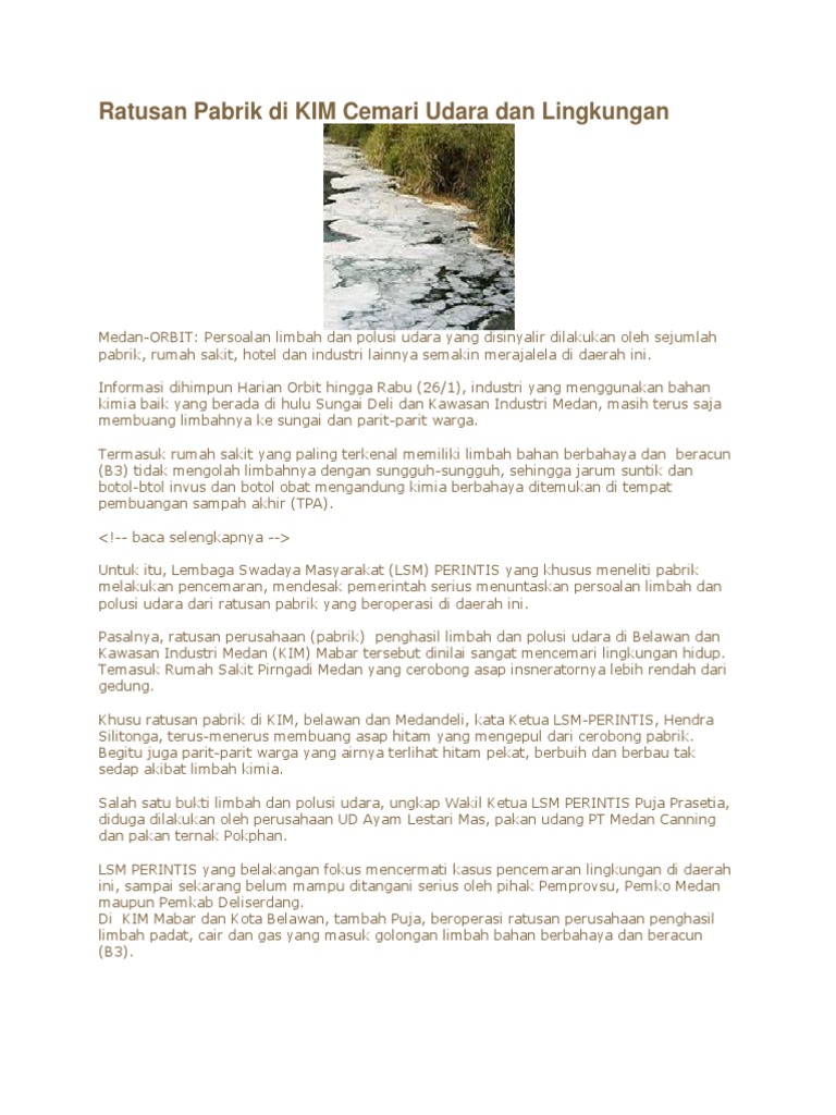Tanah untuk pabrik atau gudang di kim 3 medan mabar (medan labuhan) (kim 3) kim 3 medan rp. Kepala pembalap liar bolong diterjang peluru, polda sumut periksa 16 orang saksi. Petrosuda gresik pelita raya no. Medan properti forum, kota medan (medan, indonesia). Oleochemical and soap ind alamat: